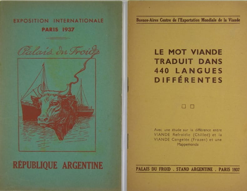 Jointe une plaquette sur la viande, également éditée par la République Argentine et traitant des valeurs nutritives de la viande, anecdotes historiques ; illustrations.Intéressante plaquette éditée à l’occasion de l’exposition internationale de 1937.