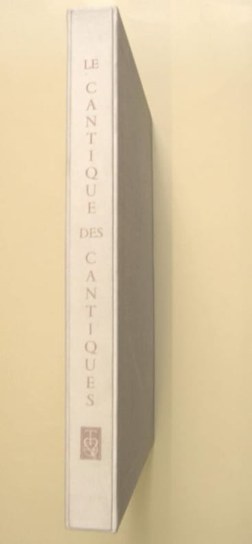 Avec la Genèse, le Cantique des cantiques est le livre le plus commenté de la Bible. Les lectures les plus diverses ont transformé ce magnifique poème en document ethnologique, conte érotique, fable mystique, essai ecclésiologique ou chant composé par le roi Salomon. Le texte que nous présentons ici est une traduction en ancien français du chant de Salomon, un des huit chapitres du Cantique des Cantiques. Parabole sur lamour humain et lamour divin à travers les figures du fiancé et de la fiancée amoureux, qui se cherchent et se séduisent dans les jardins de Palestine des commentateurs ont vu dans les figures de Salomon et de la Sulamithe une préfiguration de l'amour du Christ, comme l'indiquent les titres de chapitre. Un des 700 ex. num. sur Vélin d'Arches illustré par Emile BERNARD. Ce peintre mystique illustre dans un style épuré la dimension pré-chrétienne du Cantique. Infimes usures.