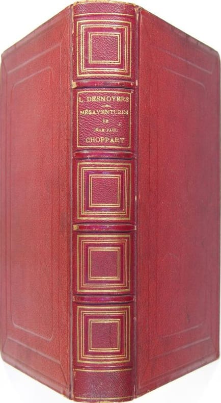 Passart 12 x 18 Paris 1854 Un volume, reliure demi-chagrin d'époque, XII-316 p., dos à quatre nerfs, filets et titres dorés. Nouvelle édition, entièrement refondue, quatre gravures hors-texte de Hadamard. Les aventures de Jean-Paul Choppart, feuilleton-roman, sont parues d'abord dans "le Journal des Enfans", puis en librairie en 1834 et deviennent à partir de notre édition de 1854 "les mésaventures". Dos légèrement frotté, mais très bon exemplaire.(B33) Livre