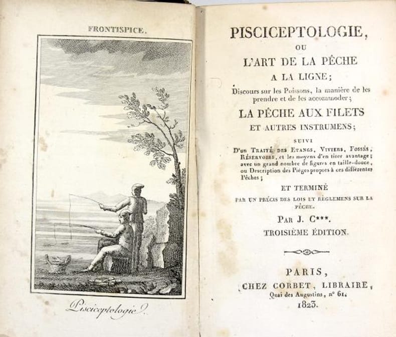 Imprimerie de Cussac, Paris, 1823, troisième édition. In/12 reliure demi-basane verte, dos à nerfs, filets et titres dorés, 28 planches hors-texte, 1 frontispice, 416 pages. Deux ex-libris contre-collés sur les pages de garde (Westwoof T.). Rousseurs et planches déchargées sur les pages en regard. Jolies et nombreuses illustrations. Suivi d’un traité des étangs, viviers, fossés, réservoirs et les moyens d’en tirer avantage.