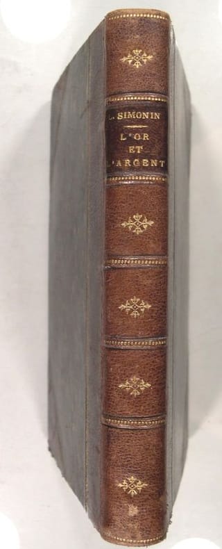 Librairie Hachette, Collection de la “Bibliothèque des merveilles” publiée sous la direction de E. Charton. Paris, 1877. In/12 reliure demi-chagrin bordeaux à coins, dos à nerfs et petits fers dorés, tranches rouges, 67 vignettes sur bois, 294 pages. Petites usures sur les coiffes et coins supérieurs. Histoire de l’or et de l’argent, découvertes, exploitation, extraction, emploi dans les monnaies et les arts, rôle dans le développement des sociétés humaines.