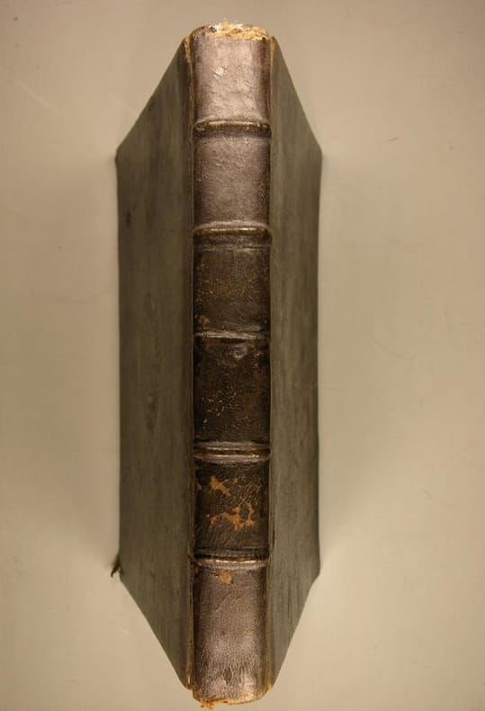 Lyon, Antoine Jullieron, 1685, 1 volume in-4 de 260x190 mm environ, 1 feuillet blanc, (7) ff. (titre avec vignette, 260 pages(2) ff., 1 feuillet blanc, pleine basane brune d'époque, dos à nerfs avec titres effacés, avec un ex-libris sur le premier contreplat et un ex-libris manuscrit sur la première garde. Impression en noir et rouge, avec des bandeaux et lettrines. Reliure très frottée avec les mors fendus, intérieur propre malgré quelques rousseurs et 1 page salie (p. 40).
