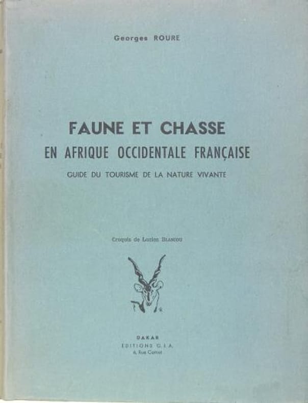 Faune et chasse en Afrique occidentale Francaise , guide du tourisme de la nature vivante Hardcover, reliure cuir 265 x 200 mm 410 pg en bon condition
