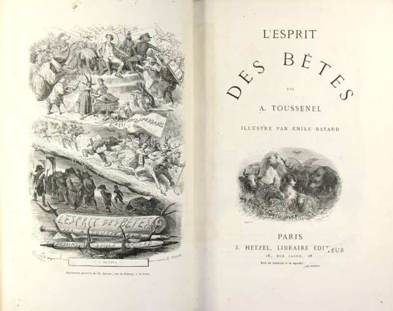 Où il est question, entre autres, des "bêtes insoumises à conserver" (sanglier, cerf, daim, chevreuil), des "ruminants des glaciers", des cétacés, des "bêtes à détruire" (taupe, musaraigne, hérisson,..) et des "bêtes puantes" (blaireau, renard, ours,..). Thiébaud 904].