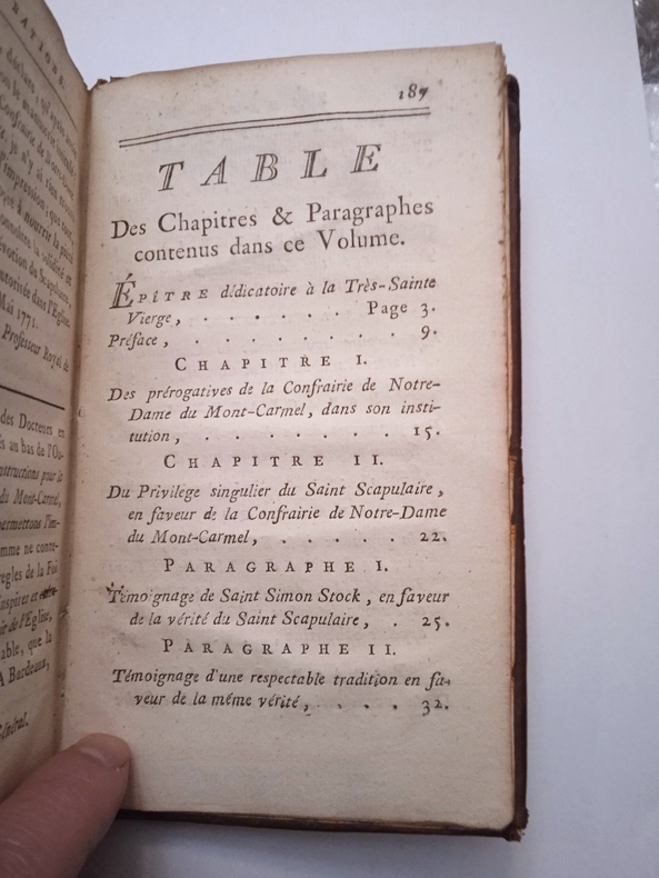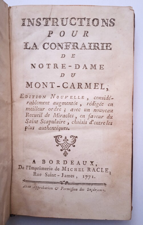 Le P. Martinien Pannetier, Grand-Carme du couvent de Bordeaux, fut une des victimes de la Terreur de 1794 (cf. Un martyr bordelais sous la Terreur : vie et mort du R. P. Pannetier, grand carme du couvent de Bordeaux, par Charles Clauchai-Larsenal, 1877). Les approbations datent de 1771. Autre édition à Toulouse en 1788. Peu courant.