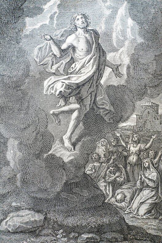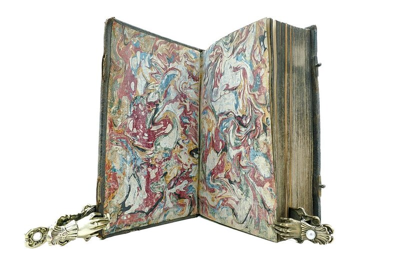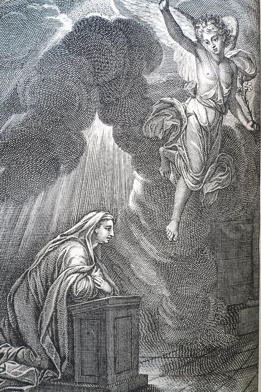 Paris, Jean-Baptiste Coignard, 1719. Fort volume in-4° (15 x 22,5 cm), reliure solide de l’époque, plein maroquin noir, quelques épidermures et frottements d’usage, coins émoussés, tranches noires (un peu passées), dos à nerfs, titrage doré (« Hiema »), traces d’anciens fermoirs, pages de garde marbrées. Bon état intérieur dans l’ensemble, de rares et légères brunissures parfois, texte sur deux colonnes, ouvrage enrichi d’un beau titre gravé et de sept illustrations à pleines pages. [31] ff. + 682 + CLVI + [4] pages. A noter une petite déchirure de papier en coin de feuille sans manque (pp. 263-264) et une usure de papier en marge supérieure de plusieurs pages avec parfois une petite atteinte au texte (pp. 375-438).