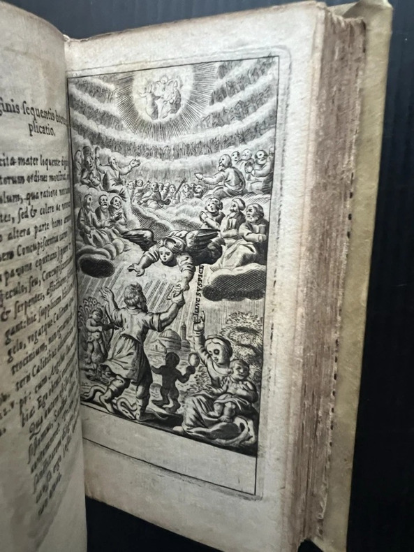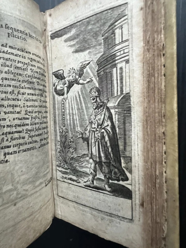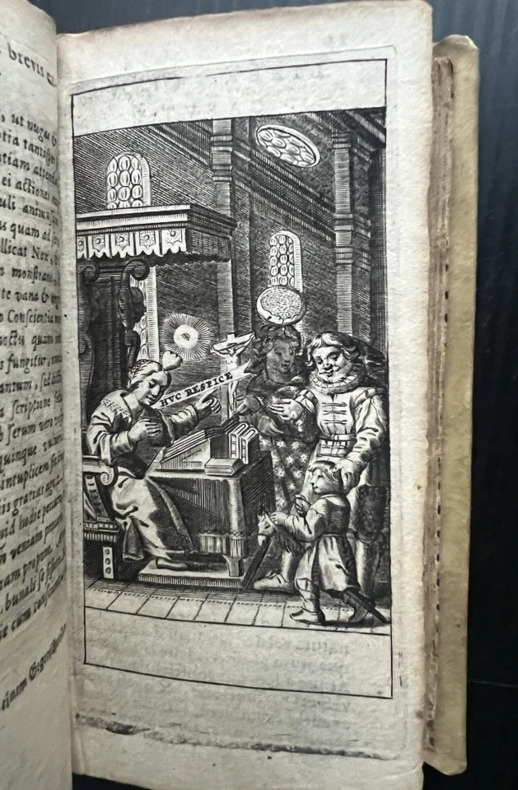 Monachii, formis Cornelii Leysserii, Electoralis Typographi 1629 In-48 9,5 x 4,5 cm. Reliure de l’époque vélin ivoire, dos avec titre manuscrit, [34]-627 pp., page de titre gravée, 2 planches gravées hors texte, colophon gravée.