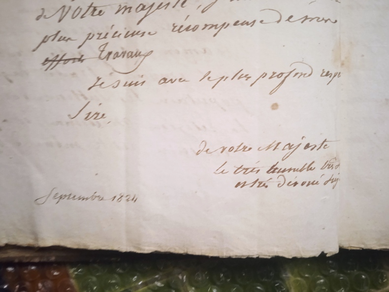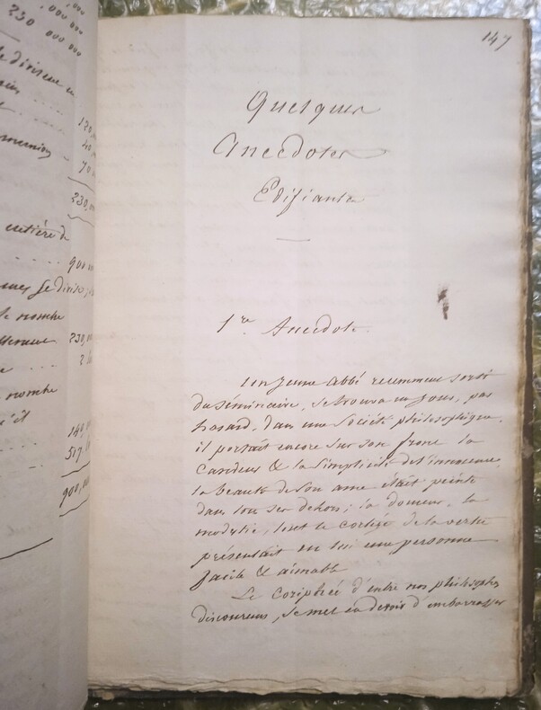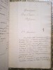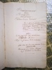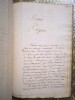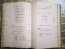 Circa 1824. In-folio (20,5 x 30,5 cm), (4) ff. + 203 pp. + 5 pp. d’une écriture plus fine. Cartonnage de l’époque dérelié (l’intérieur se détache) et abîmé (manques en coins, coiffes, dos et plats). Manuscrit sur papier, belle écriture lisible à l’encre brune, quelques corrections postérieures d’une autre couleur. Une erreur de pagination (passe de la p. 173 à la p. 177 sans manque de texte).