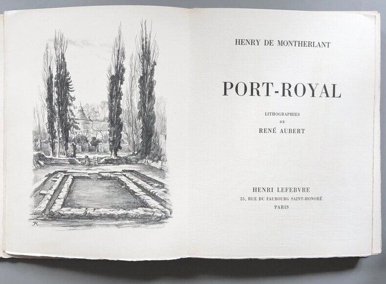 Édition originale illustrée de lithographies de René Aubert. Avec un bel envoi de l’auteur sur la première page de garde : « A monsieur Jean Fleury, cette œuvre où j’ai tenté de maintenir un juste équilibre entre les jansénistes et leurs adversaires. Montherlant ». Bel exemplaire.