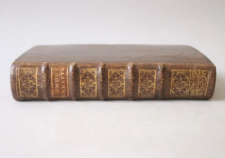 Paris, Chez Jacques Estienne, 1730. Un volume in-12 (9 x 15,5 cm), plein veau, dos à nerfs orné, pièce de titre de maroquin, tranches rouges (reliure de l’époque). Bel état de la reliure. Intérieur frais, sans rousseurs. (6) + 485 + (3) pages. Ex-libris ms. « Louis Antoine Beffroy. 1801. ».