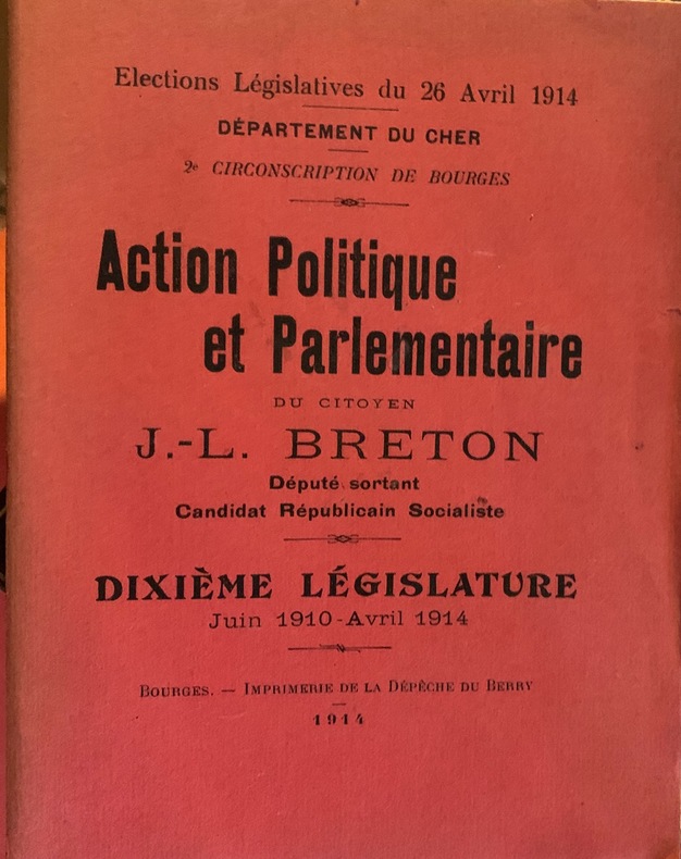 Jules-Louis Breton, né à Courrières en 1872 et mort à Meudon en 1930 fut député du Cher, disciple du vierzonnais Edouard Vaillant, il résida plusieurs années à Vierzon. ( CO/CH1)