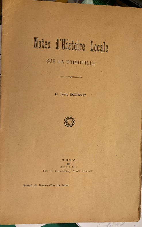 Extrait du "Dolmen-Club" de Bellac. L'auteur s'est intéressé aux Archives communales de la Trimouille pendant la Révolution. (ClGr4)
