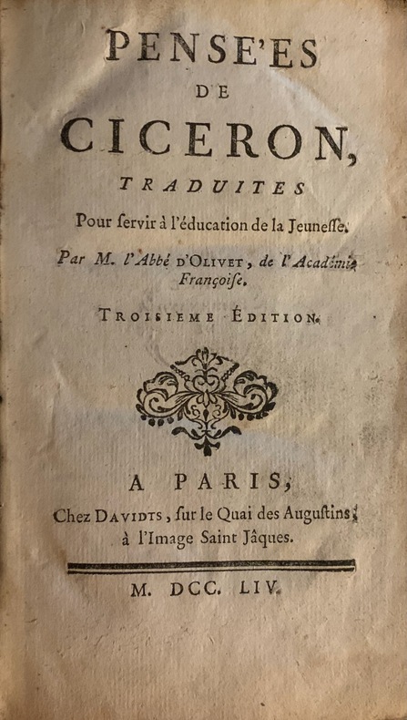 1754 Paris, Davidts, 1754; in-12 de 415 - (5)pp.; in-12 plein veau brun époque, dos à nerfs orné de petits fers dorés, titre doré sur étiquette de maroquin vieux-rouge, tranche rouges. Cachet humide vert pale du Prince Ferdinand de Rohan du verso du titre.