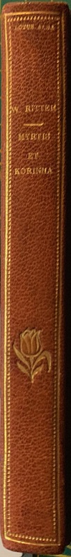 1898 Paris, Borel, 1898; in-12 étroit de (7)ff- 90pp.- ( 2)ff.; demi-chagrin lissé olive à la bradel, dos lisse encadré d'un filet et de pointillés dorés, au centre fer à la tulipe doré mosaiqué de maroquin citron, auteur et titre dorés, tête dorée, couverture illustrée conservée. Illustré dans et hors le texte de vignettes d'après A. Calbet, tirées en bleu ou bleu nuit.Volume de la collection " Lotus alba".