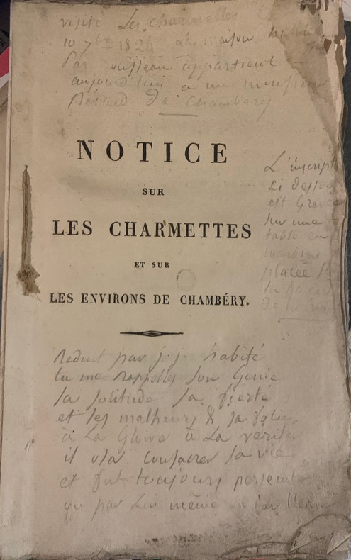 1824 A Chambéry, de l'imprimerie de F. R. Plattet, rue du Sénat. 1824 ; in-8 broché de VIII - 79pp. - (3) pp. ( liste des principaux ouvrages de l'auteur); exemplaire non coupé, non rogné, tel que paru, placé anciennement sous une couverture muette de papier bleuté de l'époque.