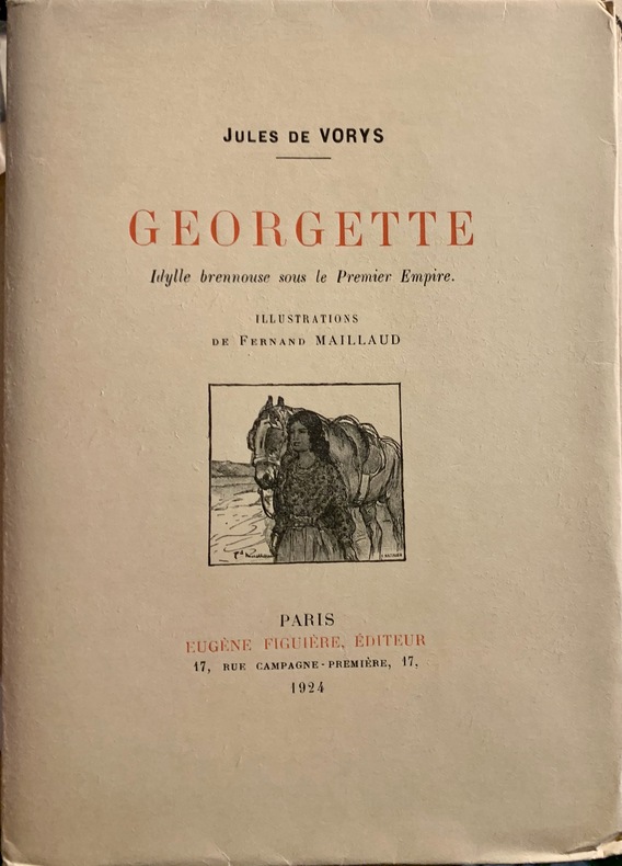 1924 Paris, Figuière, 1924 ; in-8 broché de 82pp. - (1)f. Vignettes dans le texte par Fernand Maillaud; couverture crème, imprimée en noir et rouge au 1er plat, en noir au dos et illustrée d'une vignette de Maillaud sur chaque plat. Tirage à 500 exemplaires, dont 100 grands papiers numérotés, 2 japon et 98 papiers velin d' Arches, ci n°6.Edition originale sur papier velin d'Arches. Bel exemplaire.