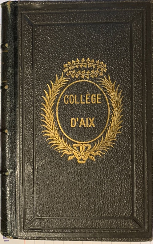 1878 Paris, Berche et Tralin Editeurs, ( Bar-le-Duc, Imprimerie Contant-Laguerre), 1878; in-8° de (4) - IV- 352pp.; demi-chagrin bleu-nuit, dos à nerfs plats cernés de filets à froid et dorés, fleurons dorés, titre dorés, plats de toile chagrinée bleu-nuit , fer doré du collège d'Aix poussé au 1er plat.