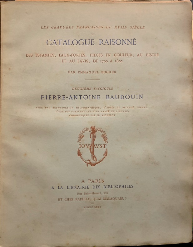 Ensemble de 4 fascicules, sur les 6 que compte la série consacrée à la gravure au XVIIIe siècle par Emmanuel Bocher, les volumes : IV. Nicolas Lancret et VI. Jean-Michel Moreau le jeune, son absents ici.Couverture jaunie au 1er fascicule, quelques rousseurs aux autres; rares rousseurs dans le texte. ( Reu-CO2)