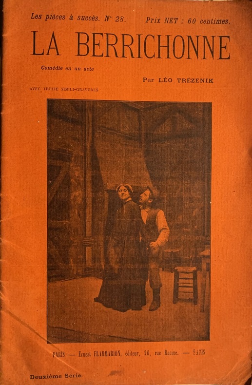 1890 Paris, Flammarion éditeur, sans date ( c. 1890); in-8 broché de 32 pp. avec 13 simili-gravures à pleine page; couverture orange imprimée et illustrée en noir. L'auteur utilise un patois paysan pour tous ses personnages.