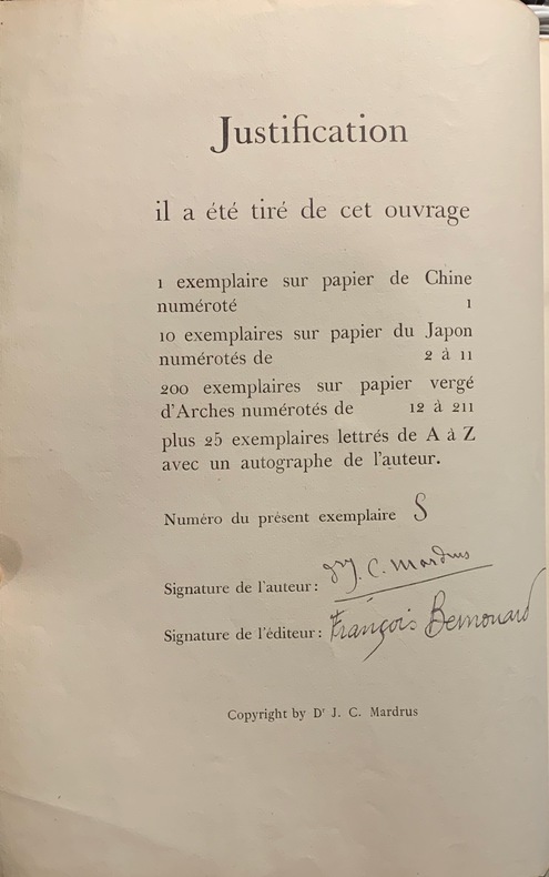 1924 Paris, F. Bernouard, 1924; in-folio de 58 ff.( non paginés); couverture de parchemin, titre en noir et marque de Bernouard ( la rose)imprimée en rouge et noir au 1er plat , dos muet. Tiré à 236 ex. signés de l'auteur et de l'éditeur, dont 1 sur chine numéroté 1, 10 sur japon numérotés 2 à 11, 200 sur papier vergé d'Arches numérotés de 12 à 211 et 25 lettrés de A à Z avec un autographe de l'auteur. Celui-ci 1 des 25 exemplaires lettrés, exemplaire n° S, comporte un autographe de l'auteur.