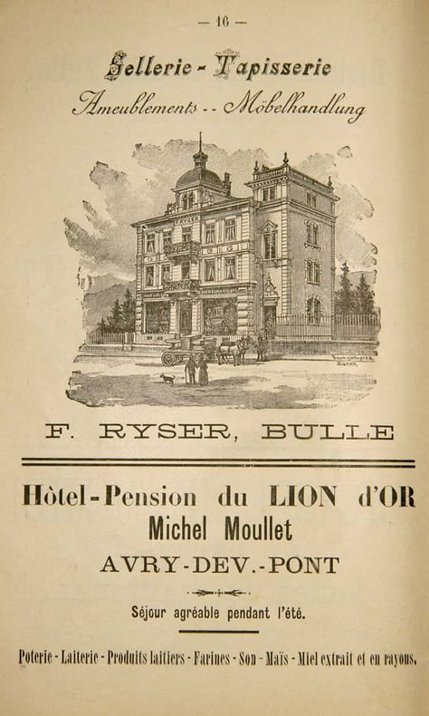 Bulle, Impr. de la Feuille d’Avis, 1904 / 1908, in-8vo, 40 p., / 40 p., (beaucoup de publicité d’entreprises régionales), brochure originale illustrée.