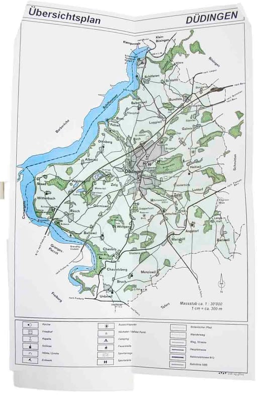 Gemeinde Düdingen, 1995, in-8vo, 112 S, ill. + gef. Übersichtsplan v. Düdingen, Original-Pappband.