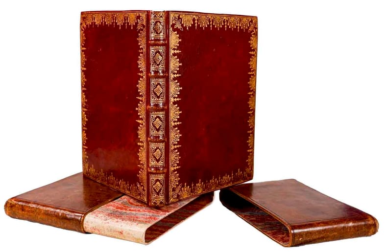 Mannheim, Gedruckt in der Churfürstlichen Hoff-Buch-Druckerey, durch Matthiam Oberholtzer, 1741, gr. in-8vo, 172 S, + 36 gansz. Kupfertafeln (davon 34 von Ph. A. Kilian), hs. Eintrag auf Vorsatz, Titelbl. mit kl. Ausschnitt, Prachtexemplar in roter Maroquinlederband, Buchdeckeln mit reicher Vergoldung, Rücken auf 5 Bünden ebenfalls reich vergoldet, Goldschnitt, O.-Leder-Schuber. Brocatpapier auf Spiegel (Einband-innen) Schönes Exemplar.