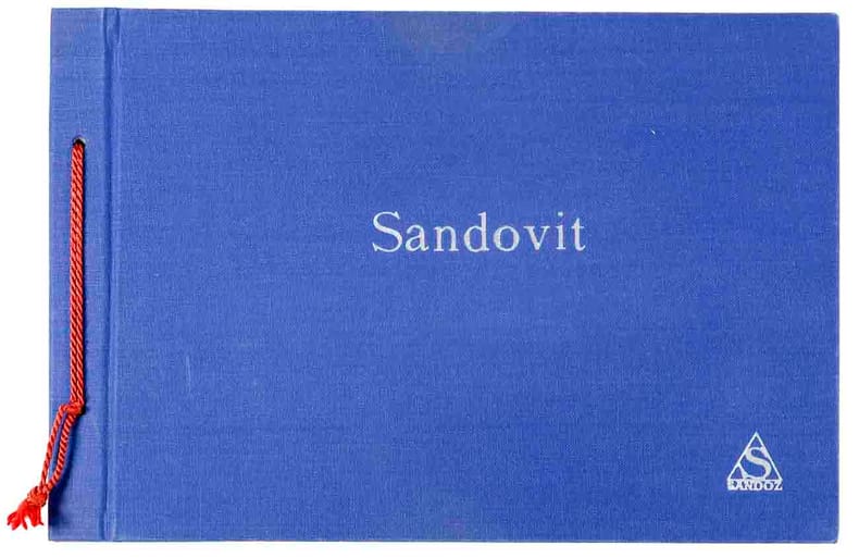 Sandoz, s. d., vers 1980, gr. in-8vo, 6 planches ill. de 12 photographies n./b. originales contrecollées, et 1 en couleurs , reliure en toile originale avec corde, + étui.