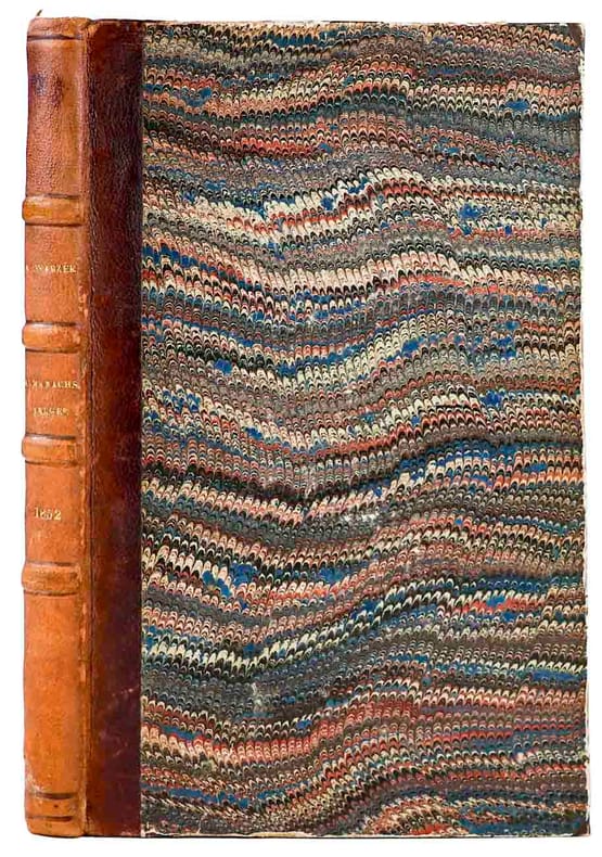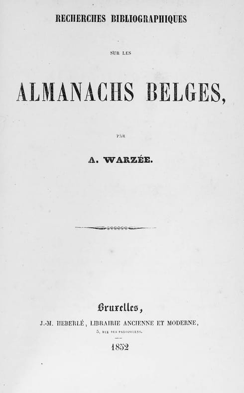 Bruxelles, J.-M. Heberlé, 1852, in-8vo, 2 ff. ( faux-titre et titre) + 177 p. (+1) + 1 f. Table des matières; 1 f. de titre + 22 p. (supplément), Tiré à 250 exemplaires. Ex-libris ‘Ex Bibliotheca Anselmi Vanden Bogaerde’, reliure en d.-cuir d’époque.