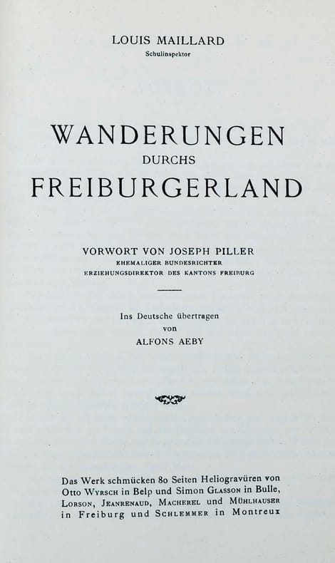 Das Werk schmücken 80 Seiten Heliogravüren von Otto Wyrsch in Belp und Simon Glasson in Bulle, Lorson, Jeanrenaud, Macherel und Mühlhauser in Freiburg und Schlemmer in Montreux. Image disp.