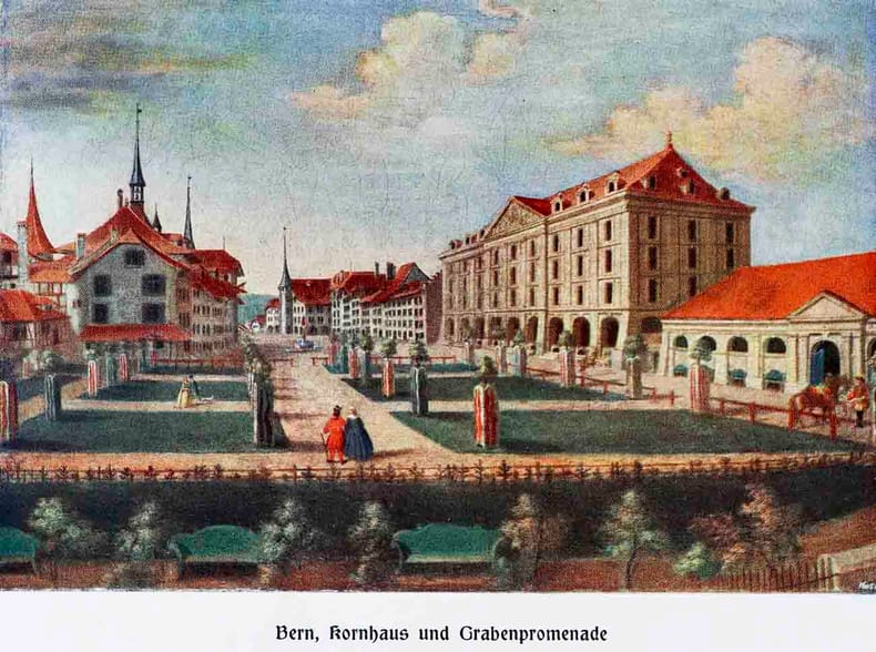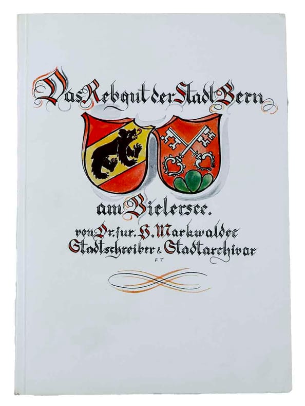 Bern, (Stadtarchiv), 1946. 8°. 163 S.mit 1 Faltplan, 30 (davon 1 farb) Tafelabbildungen sowie mehreren Tabellen im Text. Handgebundener Ganzpergamentband mit einfacher Deckelfiletierung, rotem und schwarzem, goldgeprägtem Rückenschild. vergoldetem Kopfschnittl, in Schuber. Die Originalumschläge mit eingebunden.
