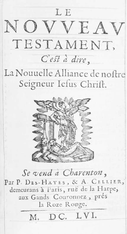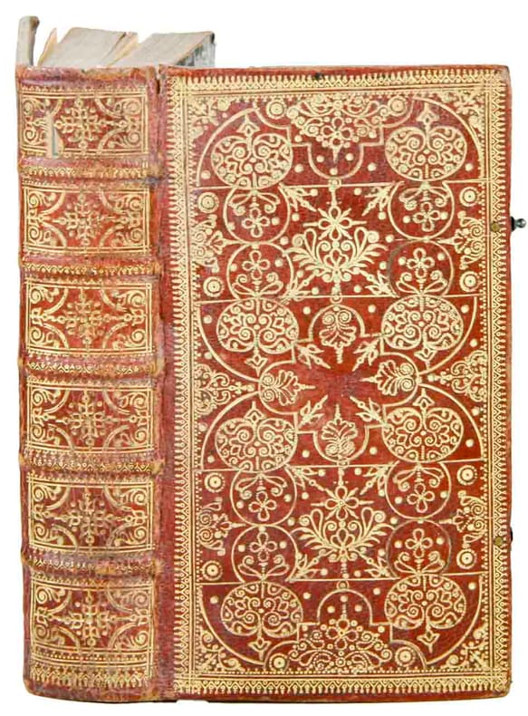 Paris u. Charenton, P. Des Hayes & A. Cellier, M. DC. LVI. / Charendon, Par A. Cellier, M. DC.LIX. 1656, 1659, pt. in-8vo, 1) Titre gravé + titre imprimé avec vignette, + feuilles non paginées, imprimées à doubles colonnes, règlées en rouge. 2) Les Psaumes avec textes et notes musicales gravées également règlées en rouge, suivis par: La forme des prières ecclesiastiques et Le Catéchisme, ex libris ‘Lion’ avec lettres W: C: D: G.’, Maroquin rouge d’époque, dos et plats richement ornés aux petits fers, dos à cinq nerfs légèrement frotté, fermoirs manquants, tranches dorées.