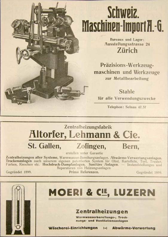 Schweizer Mustermesse, Zürich, 1917-1920, in-4to, ca. 400 à 500 S. pro Band, reich illustriert mit (oft sehr plakativer) Werbung von Verkaufsschlagern Schweizerischer Unternehmen, qqs fasc. avec pt. autocollant ‘Commission des Ecoles de la Ville de Fribourg’, O.-Hlwd.