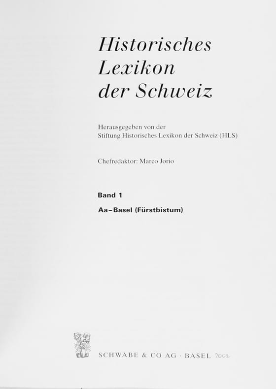 Das Historische Lexikon der Schweiz (HLS) ist ein wissenschaftliches Nachschlagewerk, das die Geschichte auf dem Gebiet der heutigen Schweiz von der Urgeschichte bis zur Gegenwart in allgemein verständlicher Form darlegt. Es ist das weltweit einzige wissenschaftliche Lexikon, das gleichzeitig in drei Sprachen erscheint, nämlich in den Schweizer Landessprachen Deutsch (Schwabe & Co) , Französisch (Attinger) und Italienisch (Armando Dado ed.). Unser Exemplar in Erstauflage ist auf deutsch. (Mehrere Art. später nur Digital publiziert, wurde umgeschrieben z.b. für Forel & Agassiz. (Sie überlebten den Seitgeist nicht !). Image disp.