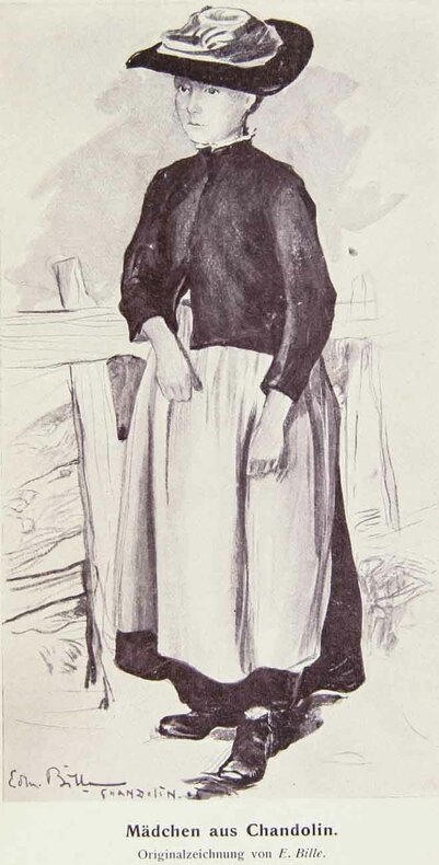 Bern, A. Francke, 1904, in-8°, VIII + 156 S. reich illustriert + 3 Tafeln (Mädchen aud Chandolin / Benoit /Der Herr Curé (nach Orig.-Zeichnungen v. Edmond Bille), Stempel auf Titelbl./ Exlibris Peter E. Obergfell, ill. Halb-Leinen Titel in gold am Rücken. Ill. Orig.-Broschur miteingebunden.