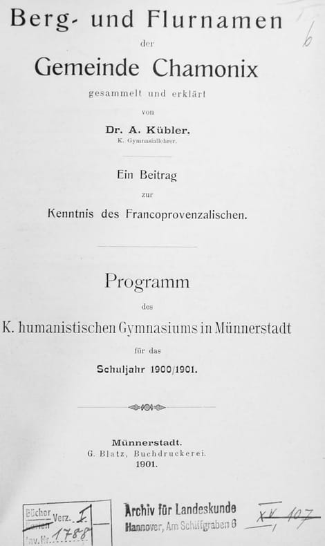 Seltene Studie ‘eines der sehenswertesten Teile der Alpen. Wie ‘La Flégère, Col de Balme, Glacier des Bossons und andere weltberühmte Punkte zu ihren Namen gekommen sind’. Image disp.
