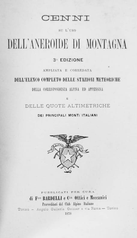 Bardelli, 1878, pt. in-8vo, 57 p., (p.36-57: Elenco delle stazioni meteorologiche della corrispondenza Alpina-Appennina Italiana, Instrumenti...) cartonnage moderne, brochure orig. cons.