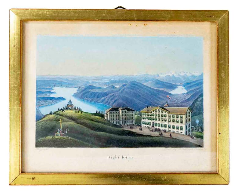 Zürich, R.Dikenmann, o.J. (um 1830), 10x13 cm., kolorierter Stahlstich mit Hotels. (Original). in Goldrahmen. (11.5x14.5 cm).