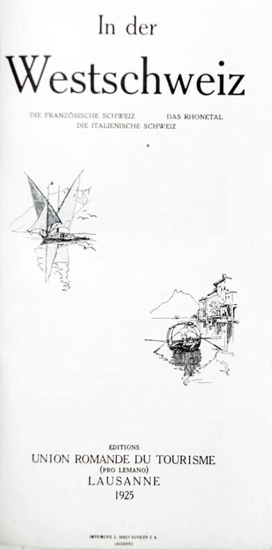 Lausanne, Ed. Union Romande du Tourisme ‘Pro Lemano’, 1925, in-8vo, 60 S., ill. + 1 Karte in Chromolithogr. (Risse rest. und verstärkt), illustrierte Original-Broschüre.