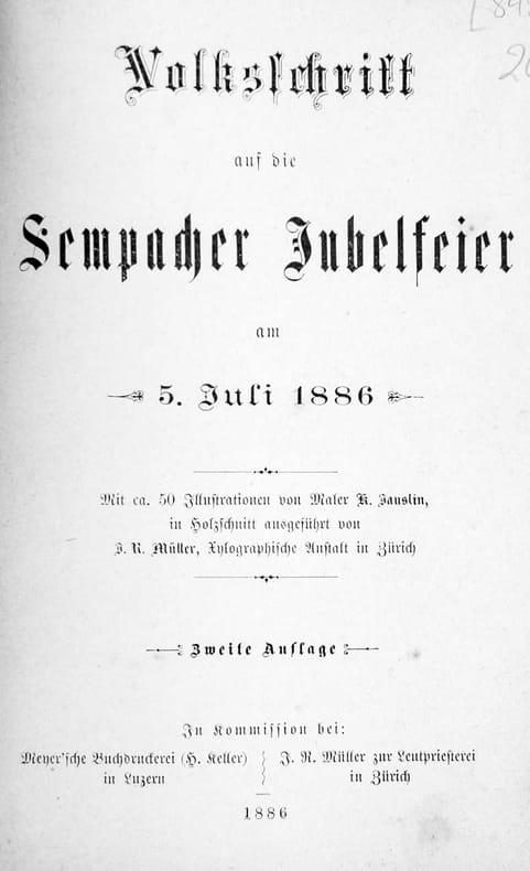 Zürich, Verlag J. R. Müller, 1886, kl. in-8vo, 71 S., illustr. mit zahlreichen Holzschnitten v. Jauslin, illustrierte Original-Broschüre.