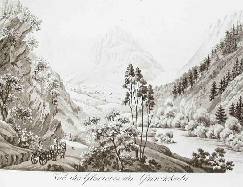 Berne, J.J. Bourgdorfer / Bale, Falkeisen und Huber / Zurich, Fuessli & Compagnie, 1817/1818, in-4to, oblong, 20 planches à l’aquatinte tirées en sépia, demi-toile récente, plats marbrés.