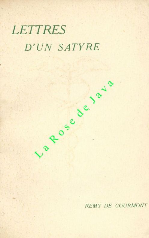 Un des exemplaires numérotés (d'un tirage non précisé). ''La première des Lettres d'un satyre paraît, sous la rubrique « Epilogues », dans le numéro du 15 juin 1907 du Mercure de France. Gourmont s'amuse à prendre prétexte de la publication d'Un cœur virginal, son dernier roman, pour donner la parole au satyre Antiphilos — qui proclame la permanence du dieu de la nature et du désir, qu'on le nomme Satyros, Faunus ou Diabolo. Dans une deuxième lettre, Antiphilos, véritable incarnation du « paganisme étemel » si cher à Gourmont, raconte comment il se trouve être à l'origine d'un tableau du Corrège : Antiope endormie... Lorsque la publication des Lettres d'un satyre reprend dans le Mercure de France, en juillet 1910, Gourmont connaît désormais Natalie C. Bamey, depuis peu il est vrai : son premier billet à « l'Amazone » date du 6 avril 1910. Mais cette fraîche rencontre va redonner vie au personnage d'Antiphilos qui, par le récit de ses démêlés amoureux avec Cydalise ou Érèbe puis de sa rencontre et de ses discussions philosophiques avec Diogène, permet à l'écrivain d'accompagner les Lettres à l'Amazone, elles aussi publiées sous la rubrique « Epilogues », de plaisantes digressions sur l'art, l'amour et le désir, mais aussi sur les avantages et les inconvénients qu'on peut trouver à être un dieu ou un homme. Le dernier Gourmont y donne une juste idée du scepticisme amusé qui l'habite alors...'' (Henri Bordillon). Rousseurs affectant la reliure ainsi que plus particulièrement le premier plat de la couverture papier originelle. Papier légèrement oxydé. L'exemplaire a conservé de larges témoins.