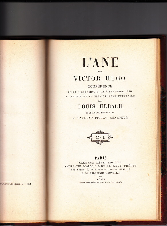1881 P.,CALMANN LEVY,1881,in 8 demi basane à coins,19p.