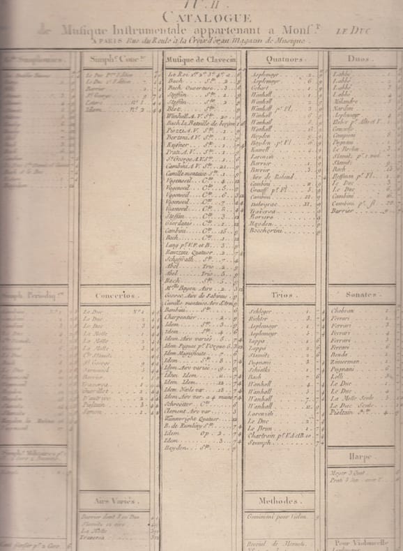 1790 Paris Le Duc [circa 1790] WorldCat (1 copy, 4 St. (je 13 S.) Quartette, Vl 1 13p.V 2 ;13p. Va;13p. Vc;13p., op. 22,catalogue,complet