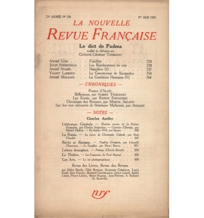 1933 LA NOUVELLE REVUE FRANÇAISE , N° 236 - 01/05/1933-162 pages