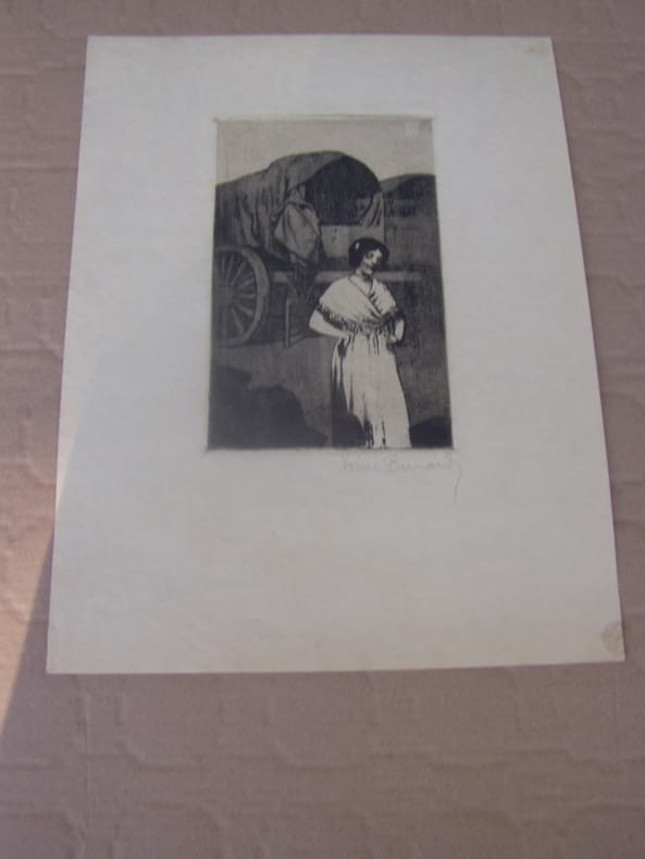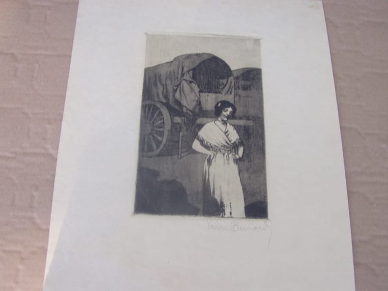 1897 Marseille,La Pauriho.La Gitane. 1897. Eau-forte inédite,Eau-forte et vernis mou. Très belle épreuve sur japon , signée en toutes lettres au crayon sous l'image; Toutes marges = 35x 26,5 cm - non repris dans La Pauriho, poèmes et eau-forte. Préface de Frédéric Mistral, avec traduction française 1899