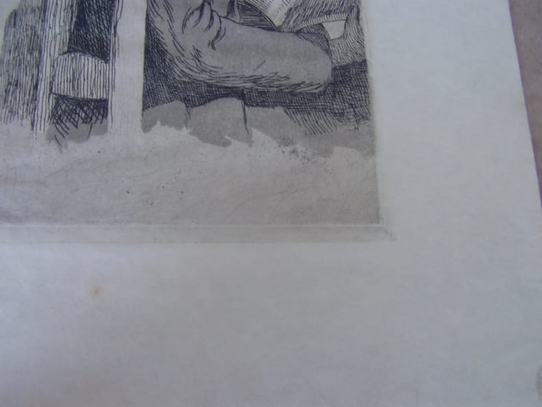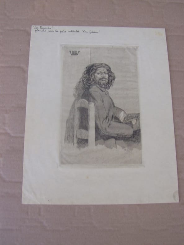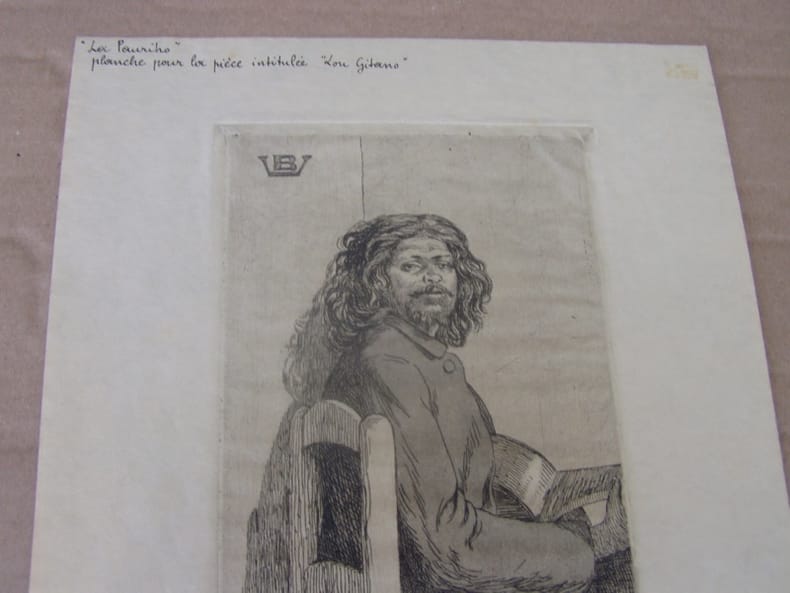 1897 Marseille,La Pauriho.Le Gitan. 1897. Eau-forte inédite,Eau-forte et vernis mou. Très belle épreuve sur japon mince, non signée mais titrée è l'encre sur 2 lignes dans le haut: Toutes marges = 28 x 22 cm - non repris dans La Pauriho, poèmes et eau-forte. Préface de Frédéric Mistral, avec traduction française 1899