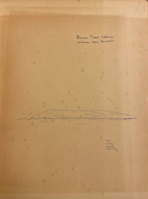 Edition limitée à 2000 exemplaires (après 20 ex. de tête num.). Rassemble des textes inédits de J.-P. Zimmermann, G. de Reynold, J. Baillods, Le Corbusier, entre autres. Et des dessins de M. North, R.-Th. Bosshard, E. de Coulon, etc... Exemplaire du peintre Maurice Robert, comportant un petit dessin original à l'encre bleu en page de garde (Lac du Vully).