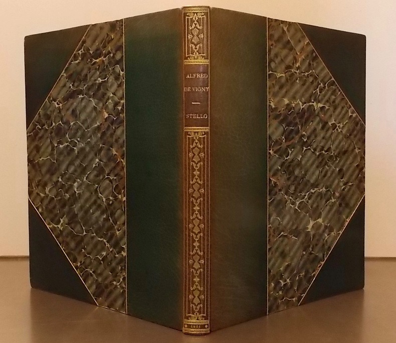 2 volumes in-12 (18 x 11 cm), demi-maroquin rouge à grain long et à coins (reliure signée Yseux), couvertures et dos conservés, dos lisse joliment orné en long, tranche de tête ornée, 244-[2] ; [4]-372-[2] pages (complet). Rousseurs. État très correct. Seconde édition, la première au format in-12, parue un an après l’originale. Elle est également illustrée de 3 vignettes sur Chine d'après Tony Johannot (1803-1852). Alfred de Vigny (1797-1863) est un écrivain et romancier français, connu pour son engagement et sa participation au mouvement romantique. Il est l’auteur de nombreux romans, comme ici Stello, sorte de recueil de « consultations » mettant en fiction le fameux « mal du siècle » dont souffre le personnage éponyme. Agréable exemplaire.