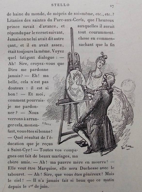 Edition en partie originale. L'ouvrage - magistral - met en scène l'histoire tragique de trois poètes, illustrant le conflit inévitable entre la création poétique et l'existence collective. ''Stello, un jeune homme à l'âme ardente, se sent une vocation de poète. Son ami le Docteur-Noir, qui redoute pour lui les déceptions de la vie, le traite comme un malade et entreprend de le guérir. Il lui conte l'histoire lamentable de Gilbert, puis celle de Chatterton, enfin celle d'André Chénier : ces trois poètes, l'un dans l'Etat monarchique français, le second dans l'Etat constitutionnel anglais, le dernier dans l'Etat révolutionnaire et démocratique ont été semblablement victimes d'un gouvernement qui a redouté leur génie. Stello est indigné par ces exemples ; et le Docteur Noir rédige une ordonnance où il prescrit de "séparer la vie poétique de la vie politique". Angles et coiffes légèrement élimés. Dos insolé. Quelques feuillets pourvus de rousseurs. Du reste, bel ensemble.